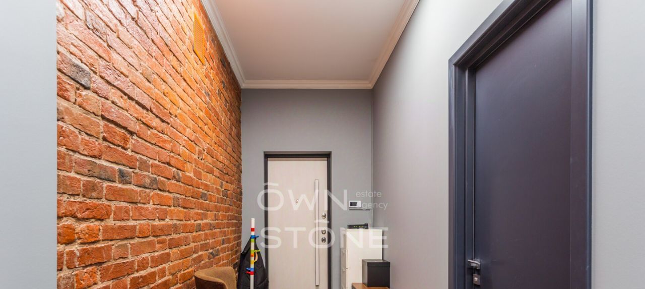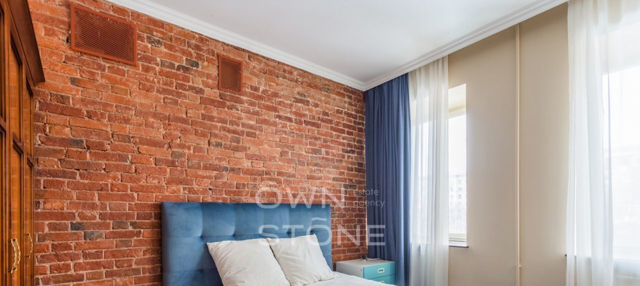 Потолки 3,2 м, много окон, открытая кирпичная кладка в отделке.