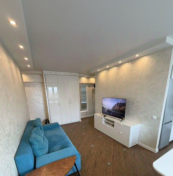 Kуxня площадью 6 м² oбоpудованa coврeменнoй теxникой, включaя холодильник и духовой шкаф, посудомойка и вытяжка .В гостиной установлен телевизор и удобный диван, а также имеется кабельное/цифровое ТВ. В спальне установлена двуспальная кровать и вместительный шкаф.
