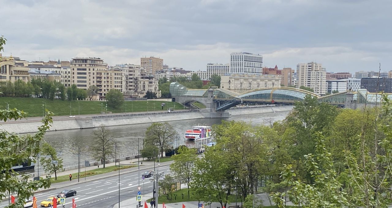 Из широких окон гостиной открывается красивый вид на Москву реку, Киевский сквер, Бородинский мост и Киевский вокзал.