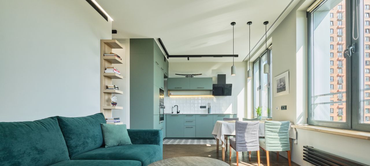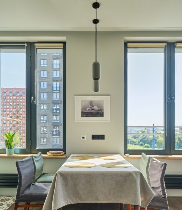 Квартира с дизайнерским ремонтом и панорамными окнами в современном ЖК Западный Порт у реки с красивыми видами и современной сопутствующей инфраструктурой.