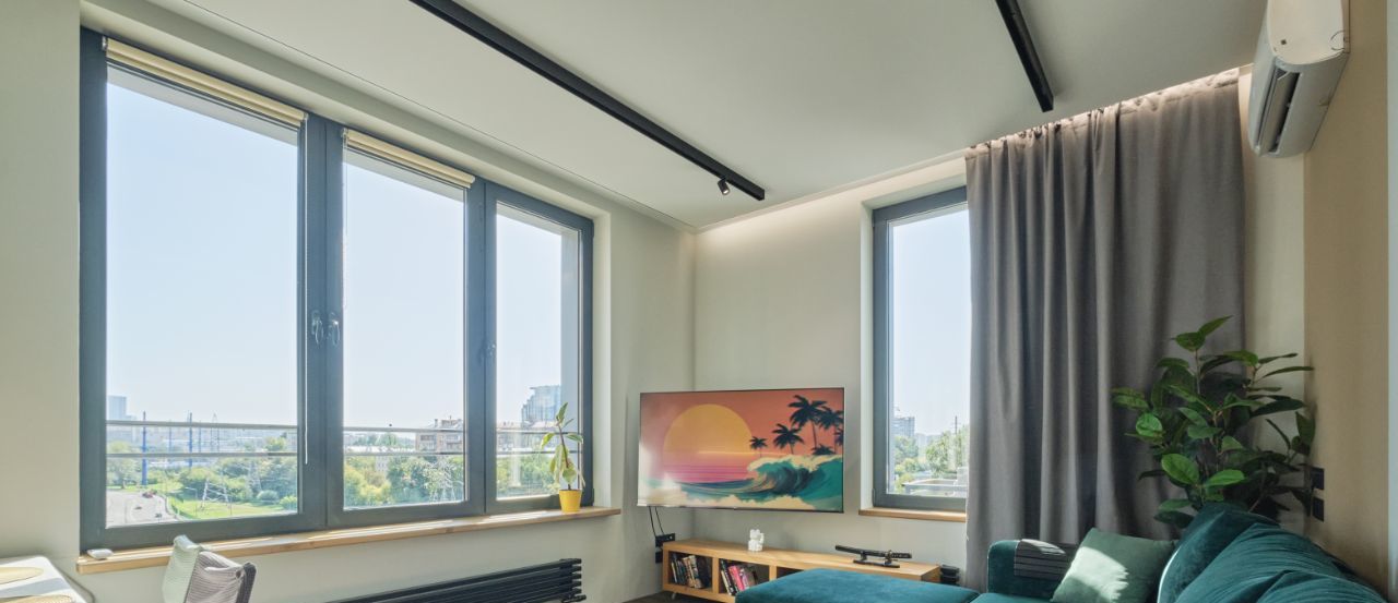 Панорамные окна, в каждой комнате сплит-система кондиционирования и приточная система вентиляции (пылевой фильтр и фотокаталитическая очистка воздуха)
