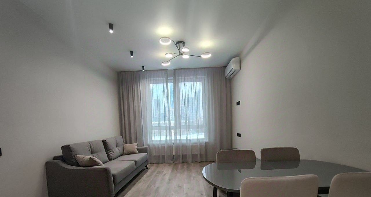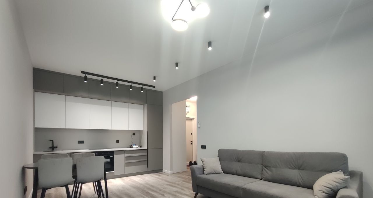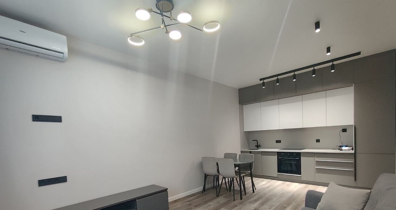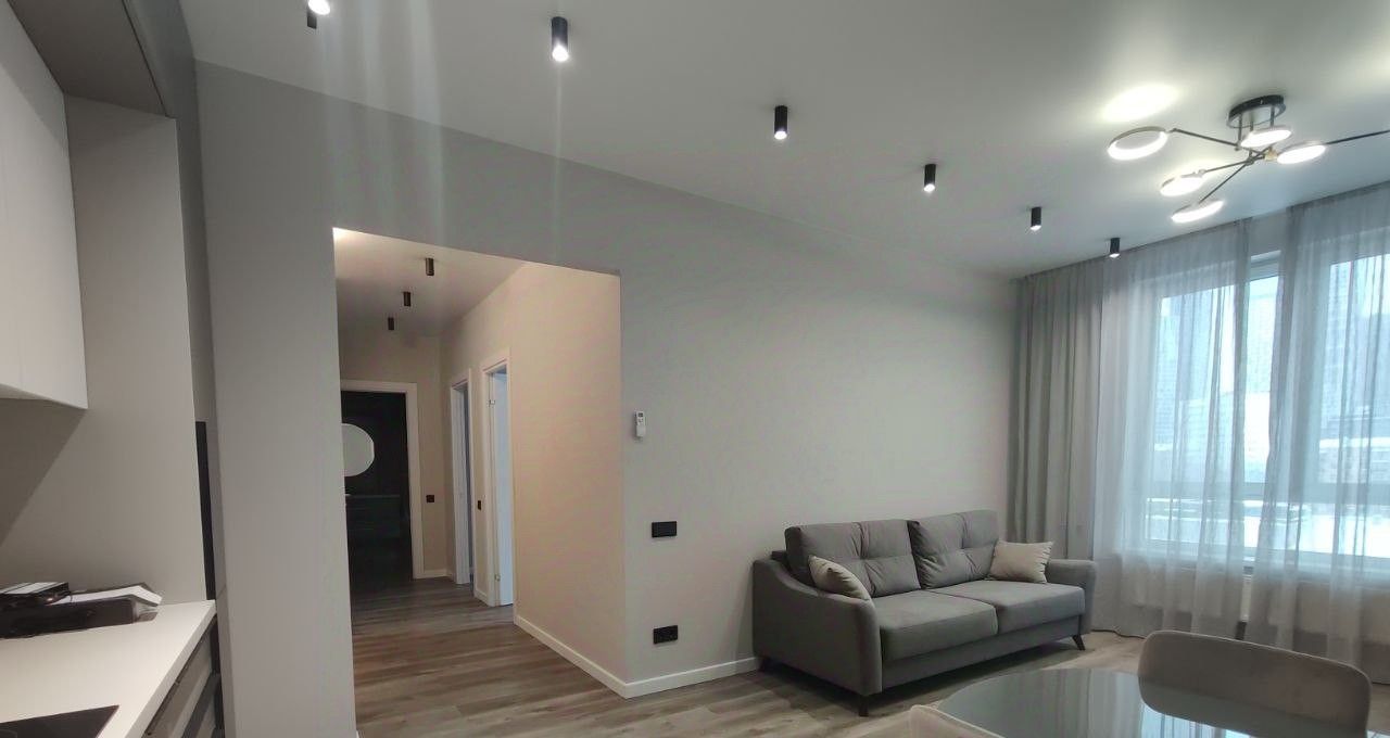 Квартира оборудована всем необходимым для комфортного проживания: современная стильная кухня-гостиная со встроенной техникой (посудомоечная машина, холодильник, духовой шкаф, варочная панель), комната свободного назначения (кабинет, детская комната), спальня с гардеробом, двухспальной кроватью и тумбочками, 2 с/у.