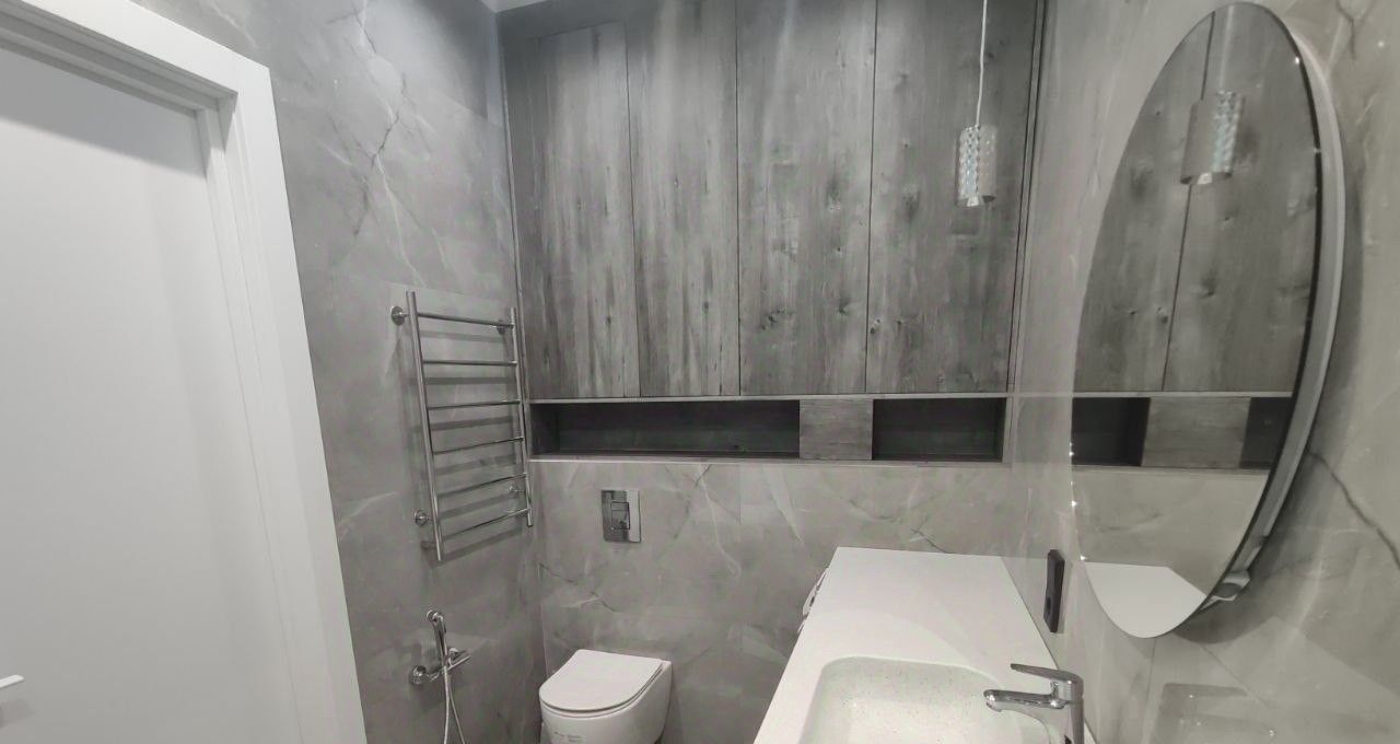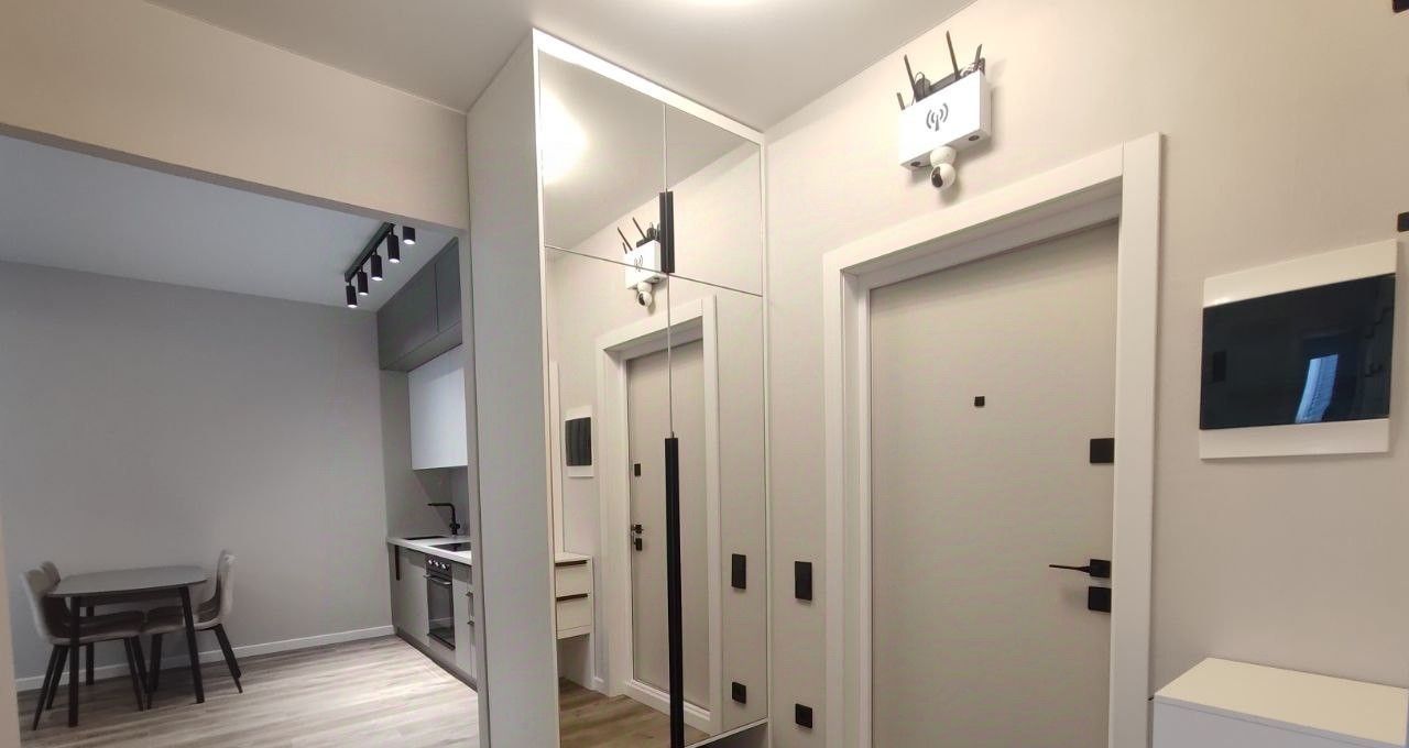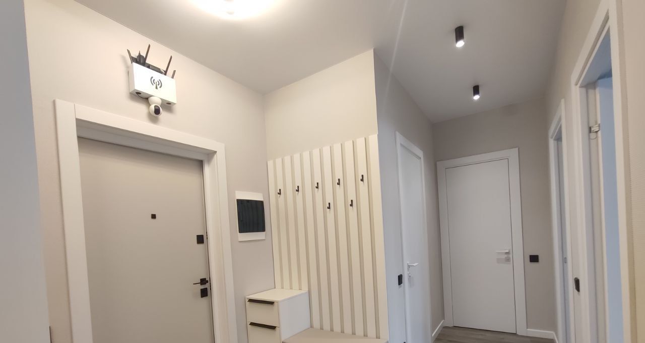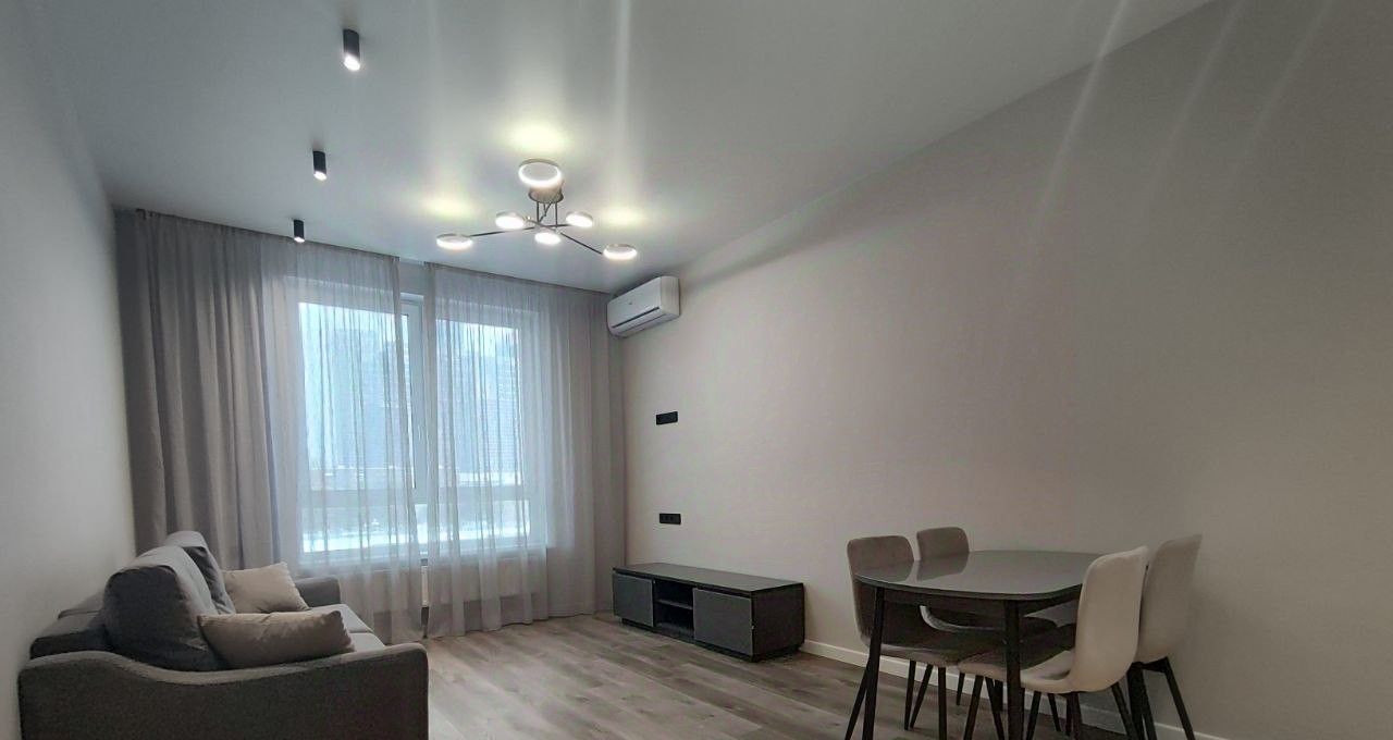 Квартира оборудована всем необходимым для комфортного проживания: современная стильная кухня-гостиная со встроенной техникой (посудомоечная машина, холодильник, духовой шкаф, варочная панель), комната свободного назначения (кабинет, детская комната), спальня с гардеробом, двухспальной кроватью и тумбочками, 2 с/у.