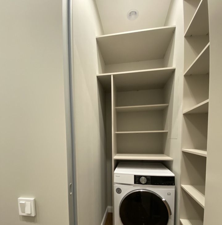 В гостиной есть: мягкая мебель, журнальный столик, комод под телевизор, на кухне: встроенный кухонный гарнитур со встроенной техникой: варочная панель с вытяжкой, духовой шкаф, посудомоечная машина, холодильник, в спальне: двуспальная кровать, встроенные шкафы, тумбочки, комната: встроенные шкафы, полностью оборудованная гардеробная, отдельно есть постирочная со стиральной машиной и гардеробной, прихожая: шкафы, есть бойлер, кондиционеры во всех комнатах. Там, где плитка сделан теплый пол, паркетная доска в комнатах и гостиной.