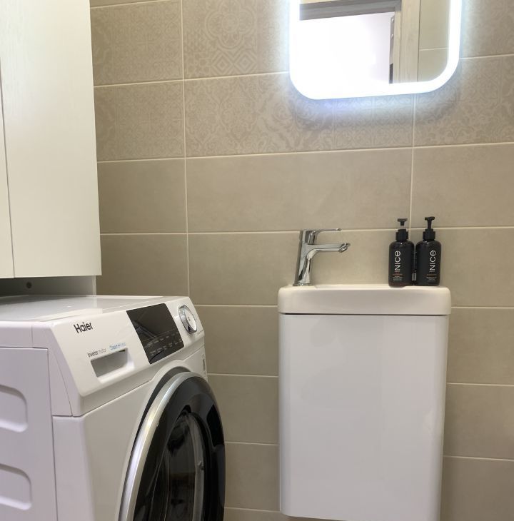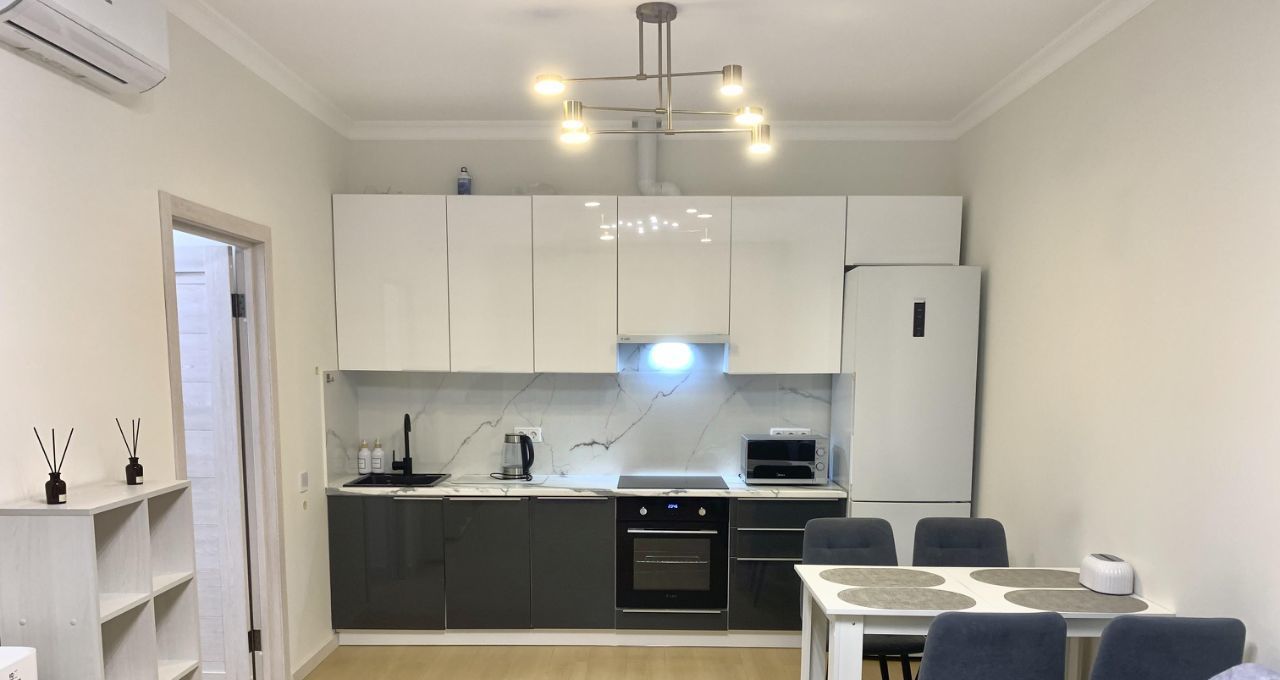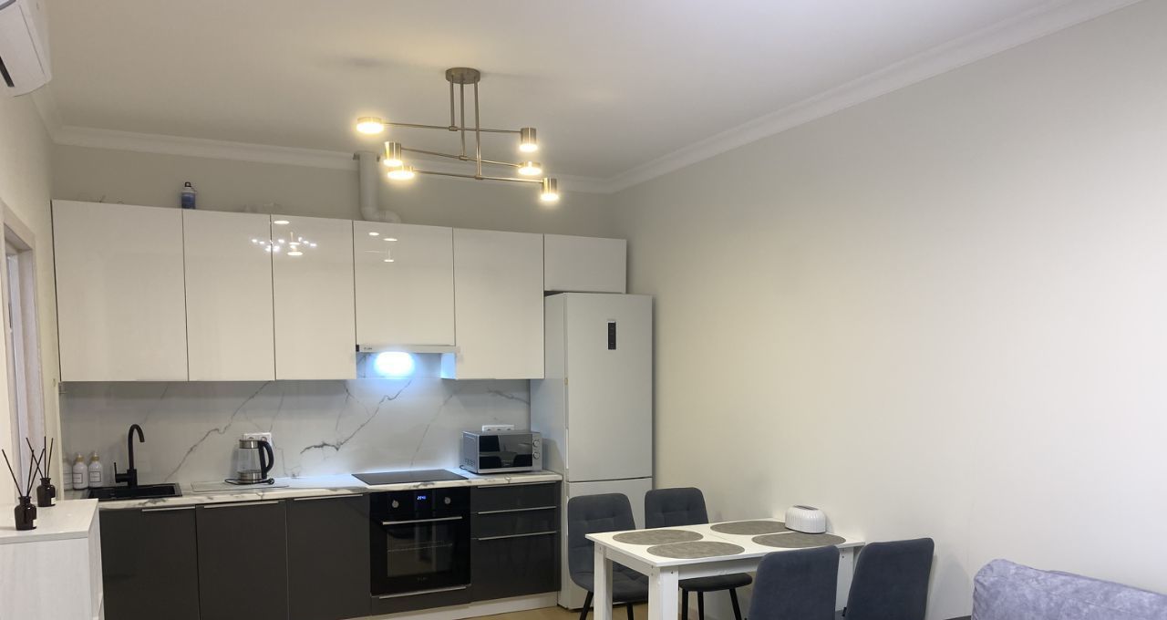 Качественная новая мебель: двуспальная кровать, раскладной диван в гостиной, объемные шкафы. Полностью укомплектована техникой: полноценный холодильник, стиральная машина, посудомоечная машина, большой TV, кондиционер, система рециркуляции воздуха.