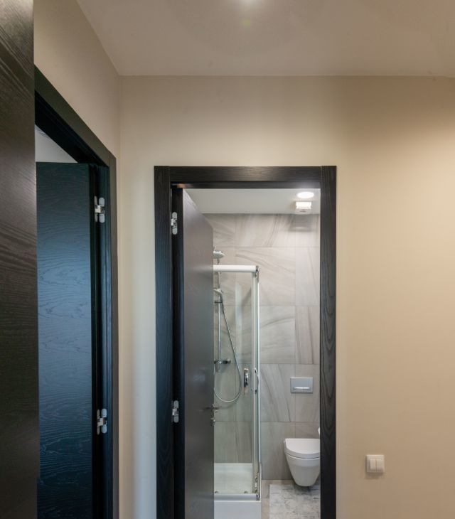 Дизайнерское лобби, зона хранения колясок и велосипедов, санузел в подъезде.