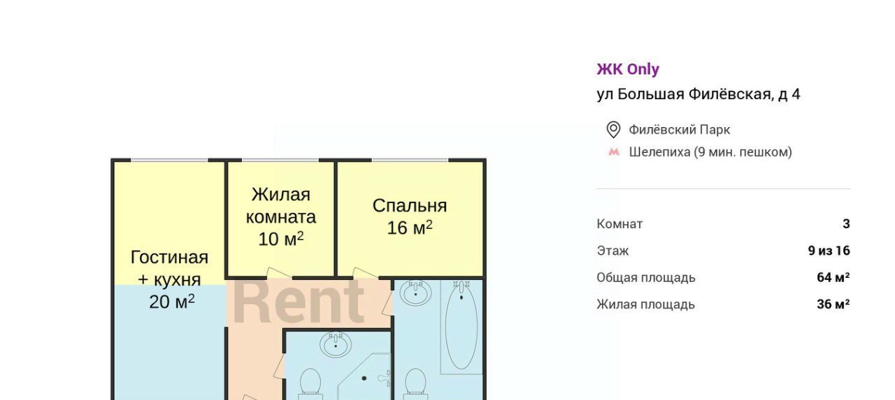 3-к кв. Москва Большая Филевская ул., 4 (64.0 м²)