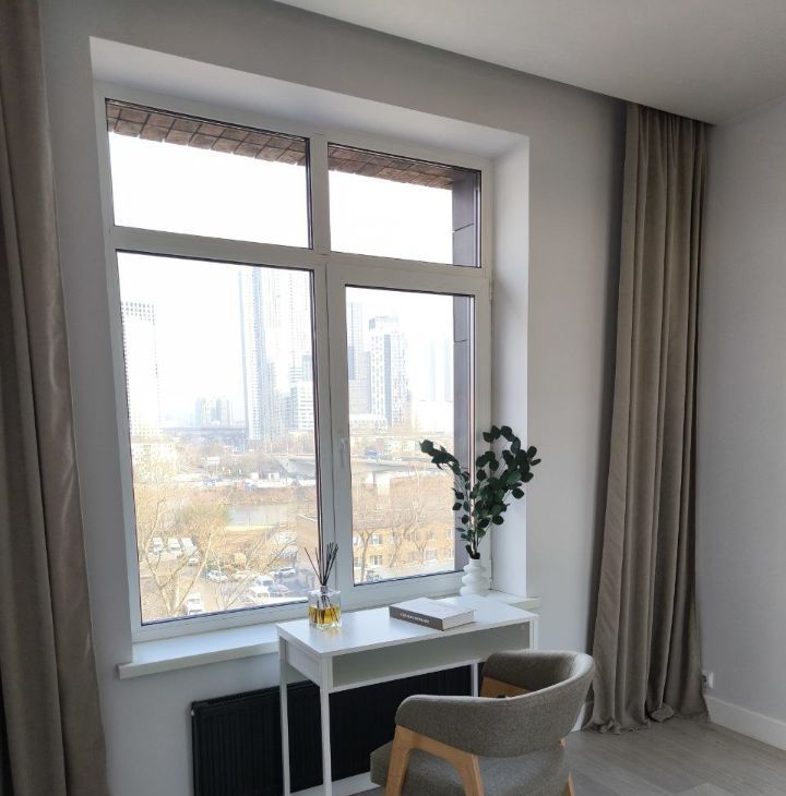 Из окон квартиры открывается вид на реку с прогулочной набережной и Сити. Вид не перекрыт домами.