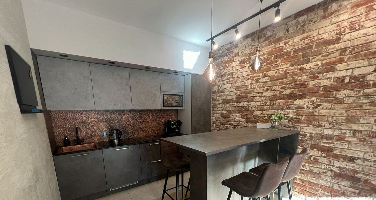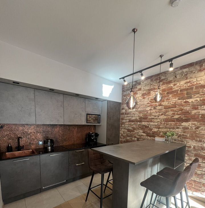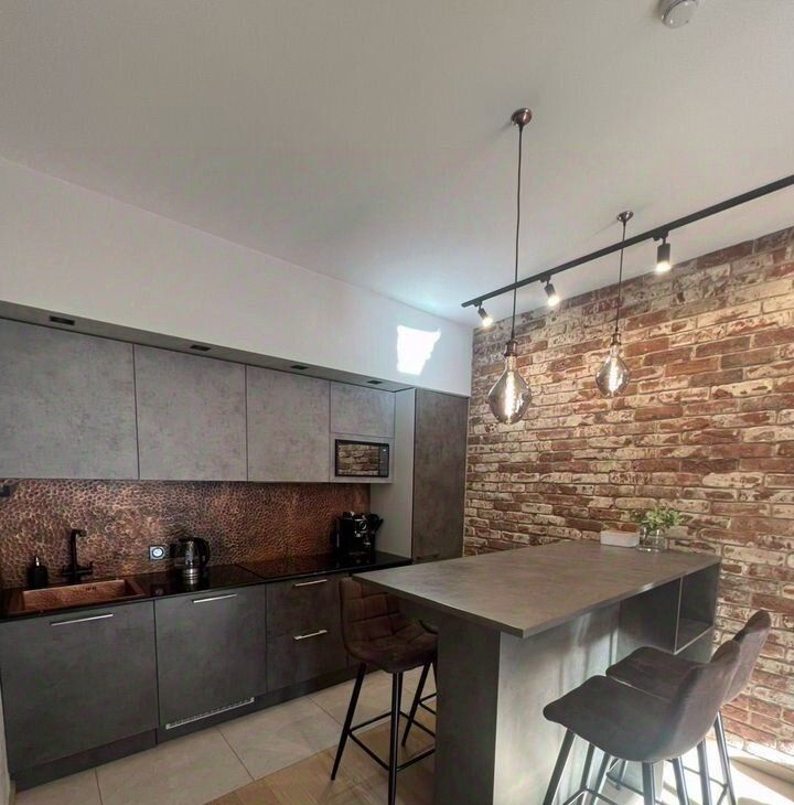 Pемонт дизaйнeрcкий c стaриннoй киpпичной клaдкoй.