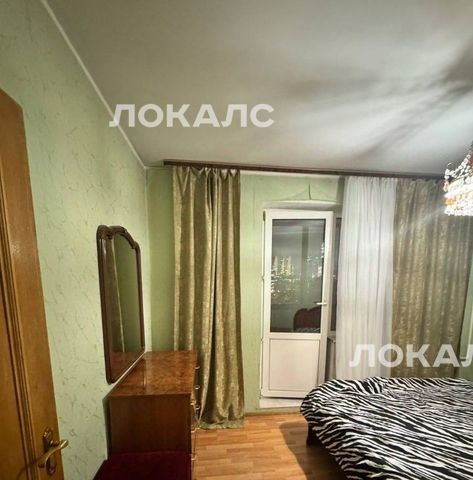 Спальня: кровать, комод, просторный шкаф, лоджия.