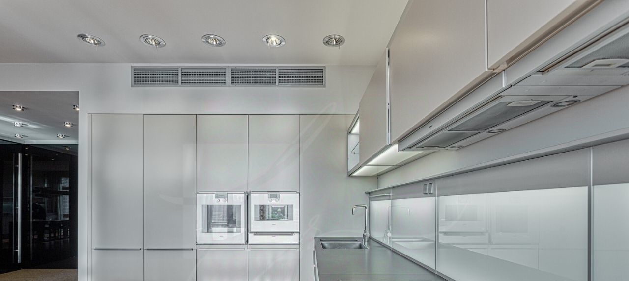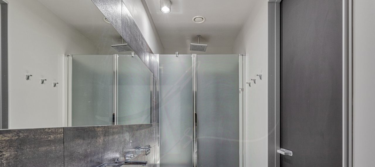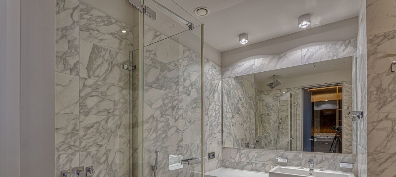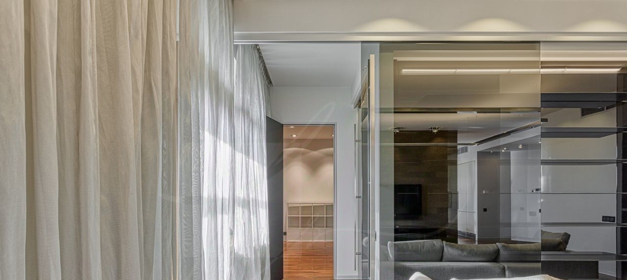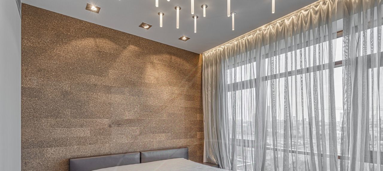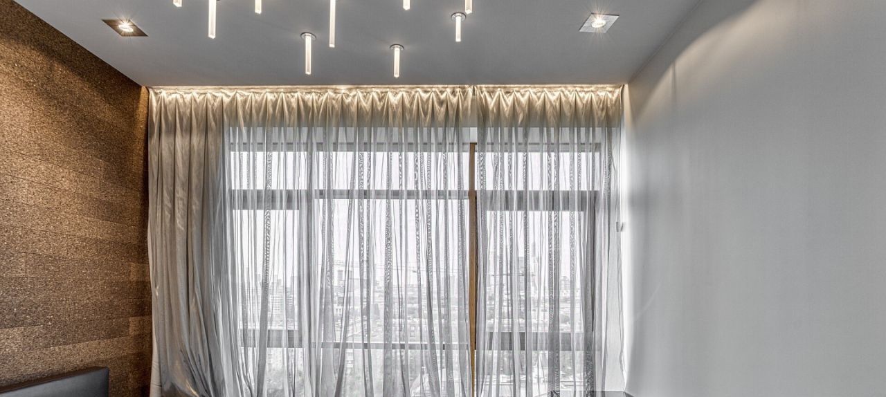 Дизайнером спланировано комфортное пространство гостиной, кухонно-столовой зоны, 2 спальни со своими санузлами и зонами гардероба, кабинетной зоной. В квартире 2 большие лоджии. Кондиционирование осуществляется с помощью системы фанкойл. Кухня оснащена премиальной бытовой техникой гаггенау: 2 холодильника, 2 морозильных зоны, посудомоечная машина, стиральная машина, вытяжка, духовой шкаф, микроволновая печь, варочная поверхность, гриль на углях. В квартире два совмещённых санузла: в одном душевая кабина, в другом — ванна.