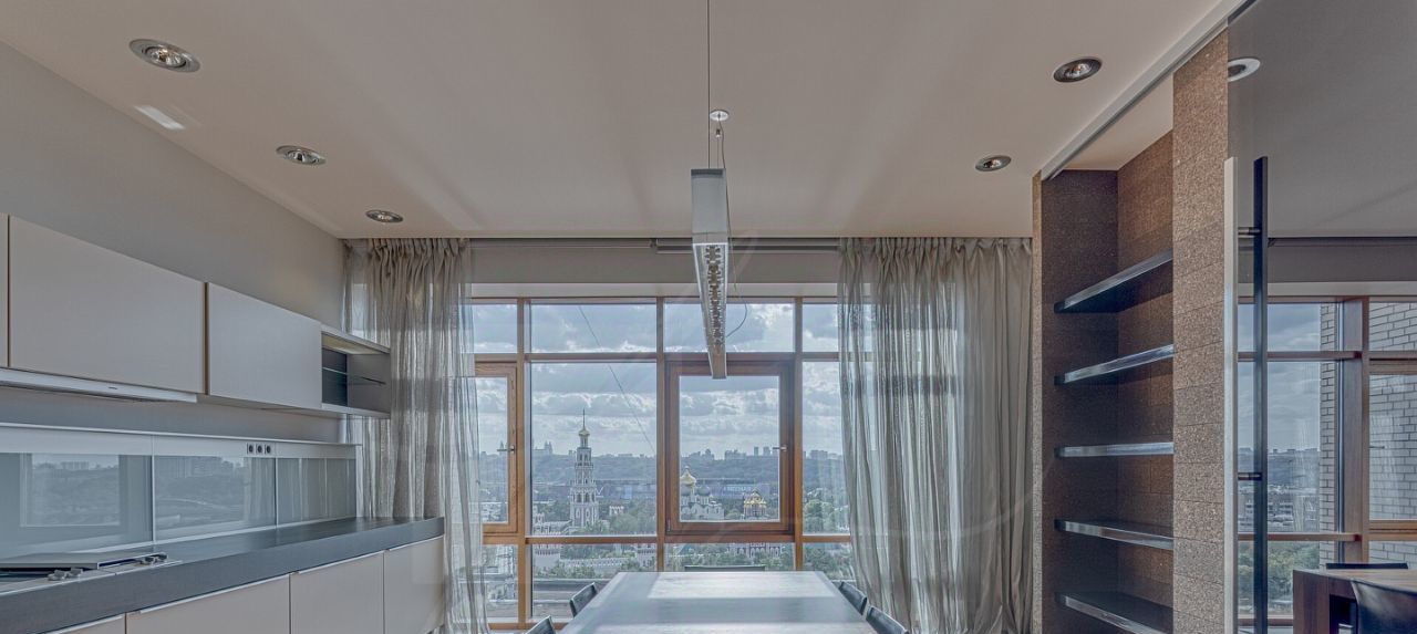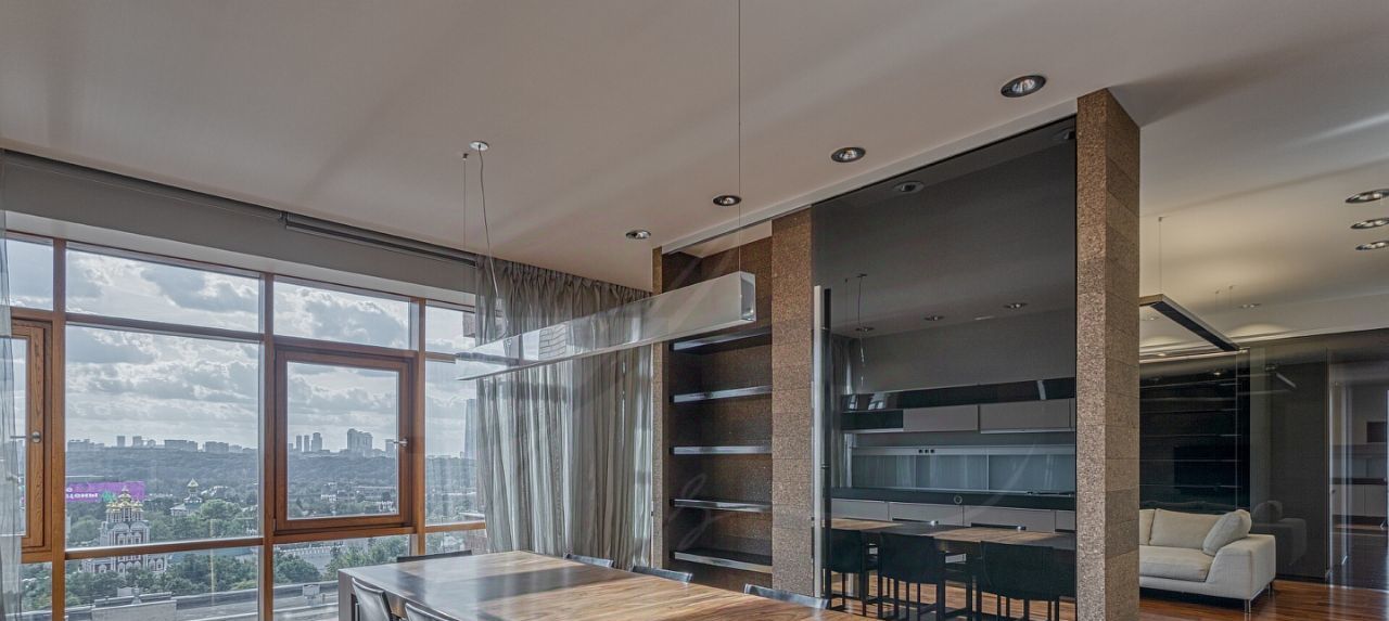 Просторная, видовая и светлая квартира в ЖК Дом на Девичьем поле. В любую сторону из панорамных окон открываются завораживающие виды на Университет, Новодевичий монастырь и пруд, реку и Сити. В доме 4 пассажирских и 4 грузовых лифта. Высота потолков 3.2 метра.