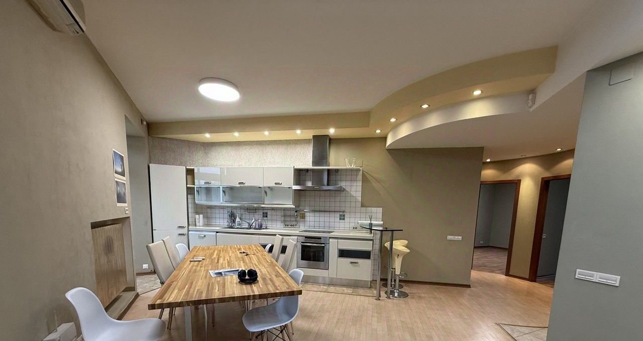 Отличное предложение в доме с выходом окон на садовое кольцо ( где окна можно закрыть стальными ставнями для изоляции света и шума) и в тихий зелёный двор . Стены с железобетонными перекрытиями. Закрытый двор, видеонаблюдение. Стильный современный интерьер. Просторная кухня-гостиная с балконом, две изолированные спальни, совмещенный санузел, где имеется ванная и душевая кабина . Имеется в наличии: посудомоечная машина, холодильник, кондиционеры,стиральная машина, подогрев полов. Высокоскоростной интернет.