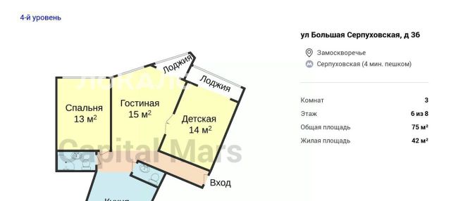 3-к кв. Москва Большая Серпуховская ул., 36 (75.0 м²)