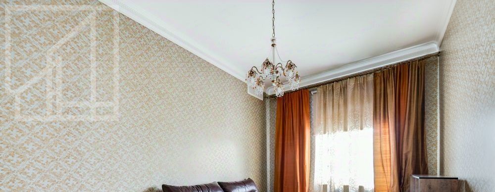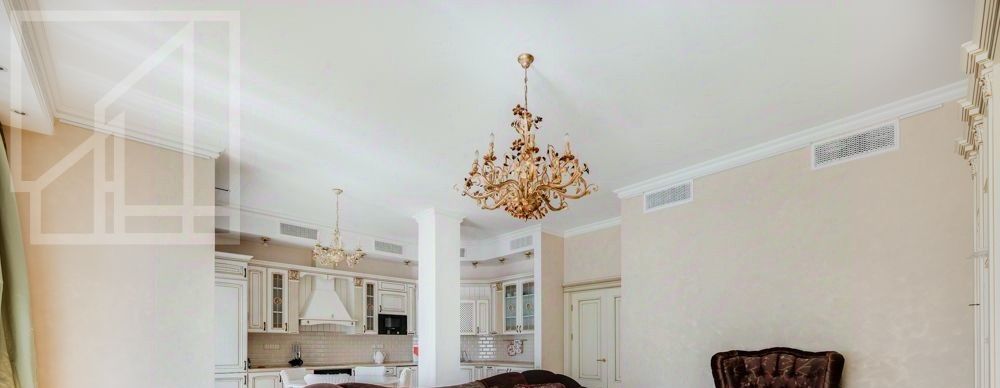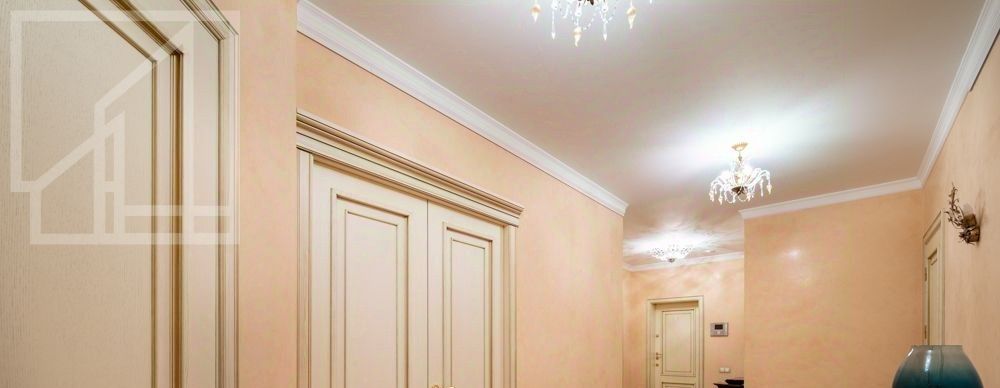 Планировка: гостиная-кухня, две спальни, два санузла, гардеробная, лоджия. Высота потолков 3.2 м. Окна выходят на обе стороны. Ремонт выполнен в современном классическом стиле. Квартира полностью меблирована.