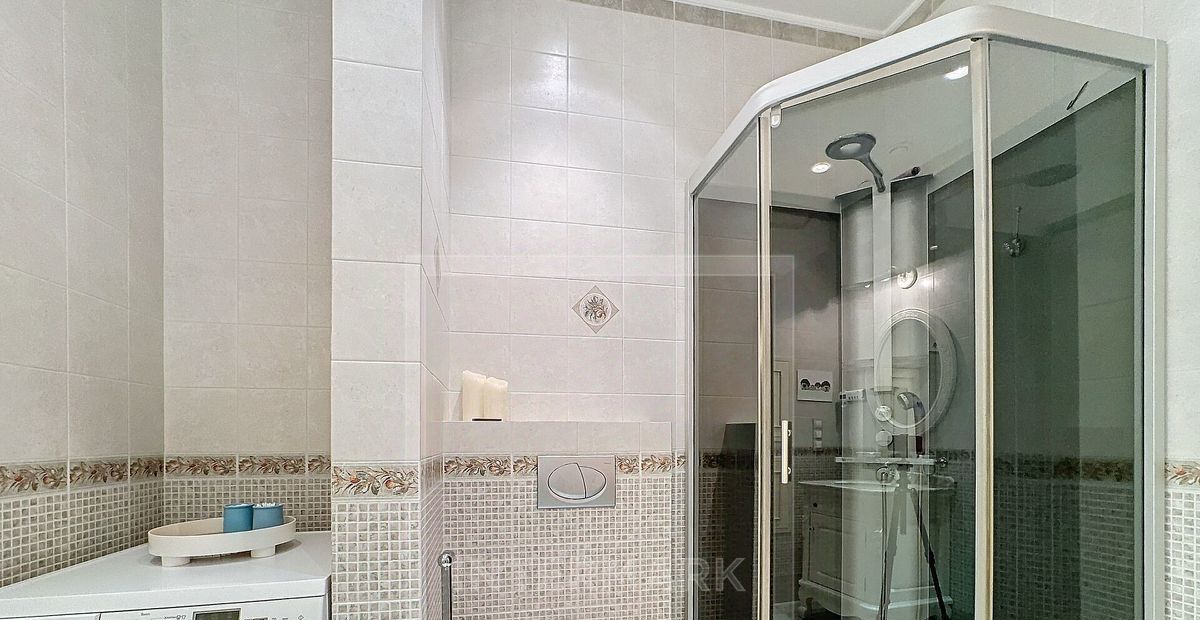 В квартире: М/место в подземном паркинге, Частично меблированная, Посудомоечная машина, Стиральная машина, Бойлер, Душевая кабина, Теплые полы, Кондиционер, Охрана, Интернет, Балкон, Европланировка, Ванна, Кухонная мебель, Окна на улицу, Окна во двор