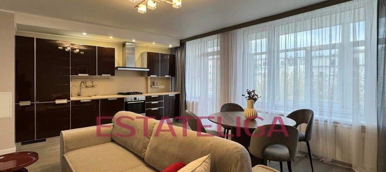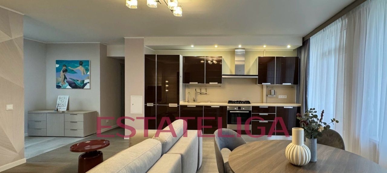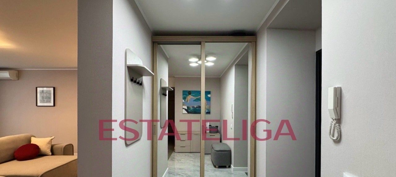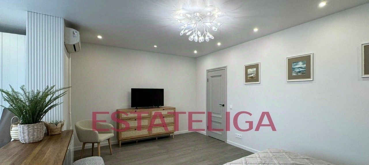 Функциональная планировка квартиры: просторная и светлая кухня-гостиная с выходом на балкон, изолированная спальная комната с двуспальной кроватью, спальня/кабинет, совмещенный санузел с ванной, холл с местами для хранения. В квартира выполнен современный ремонт с использованием качественных материалов.