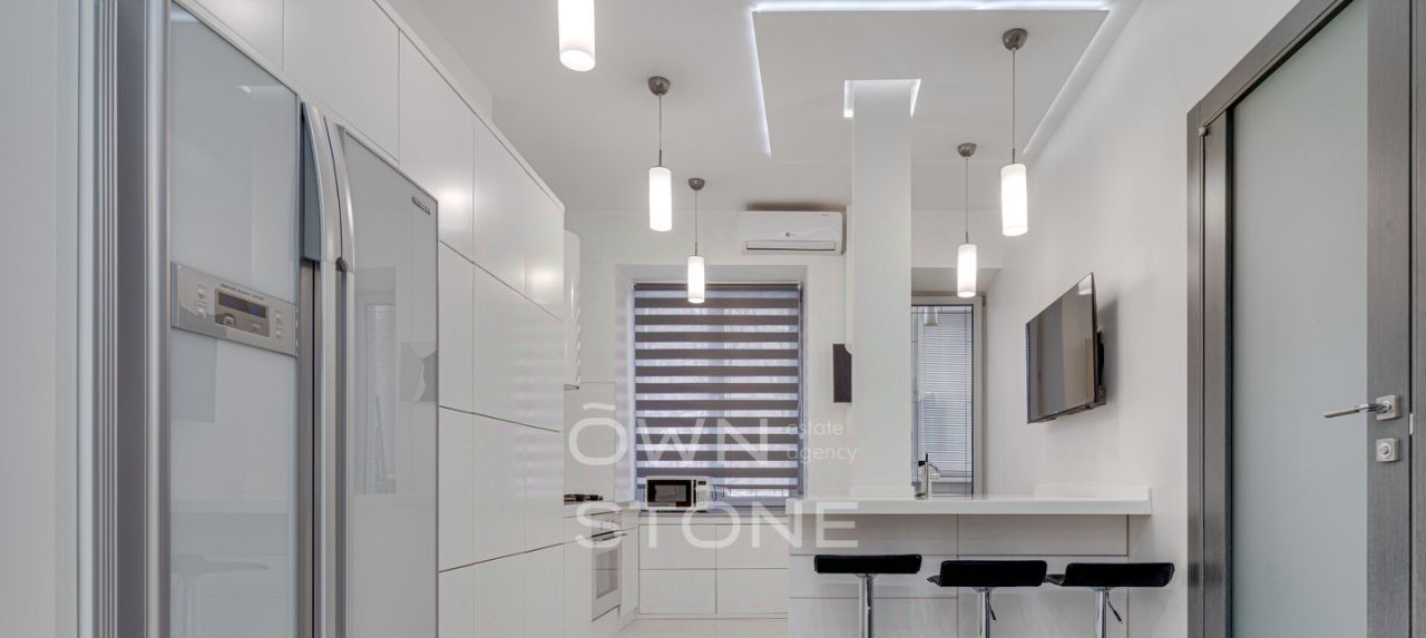 Стильная 3-комнатная квартира. 2/5 этаж. Высота потоков - 3 м. Количество спален: 2. Количество санузлов: 1 совмещенный. Общая площадь: 80 кв. м. Площадь кухни: 12 кв. м. Площадь комнат: 18+20-16. Гардеробная комната. Закрытый дрок, стихийная парковка под шлагбаум. Окна во двор.