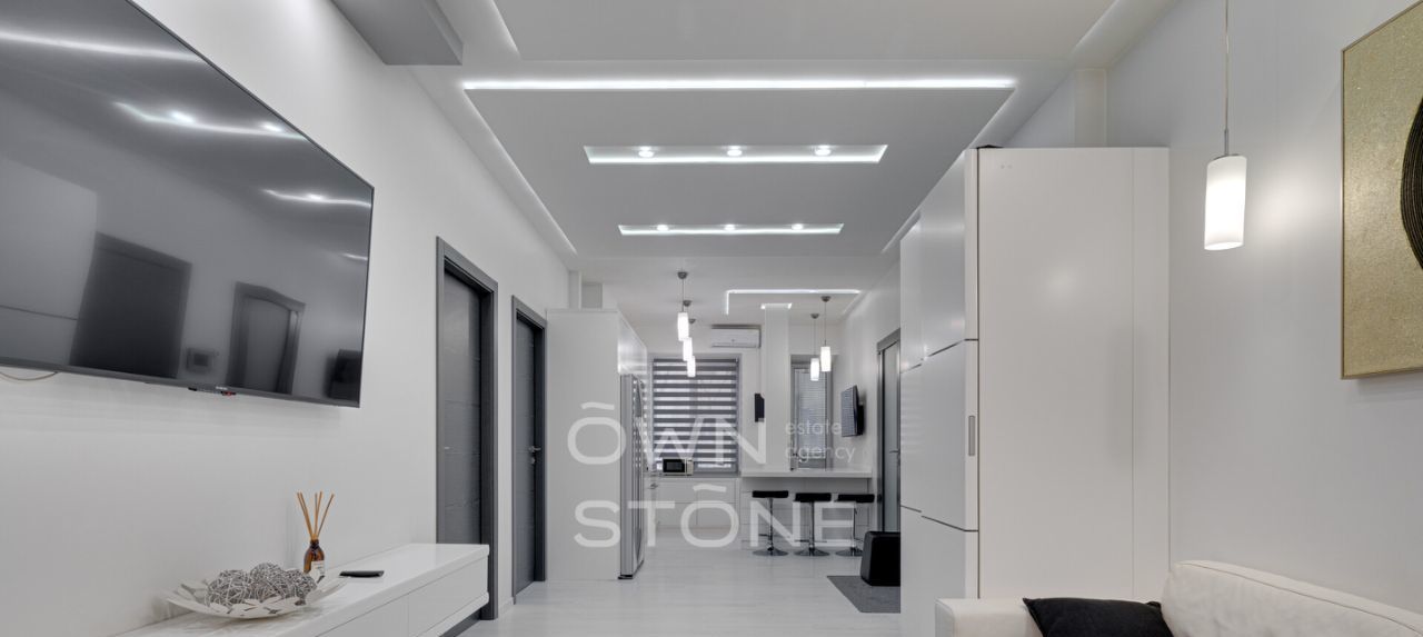 Полностью меблирована. В наличии: Холодильник, посудомоечная машина, стиральная машина, кондиционер, телевизор, интернет, ванна, душевая кабина