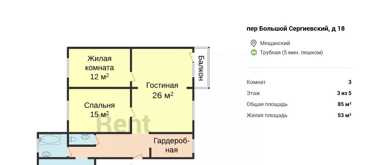 3-к кв. Москва Большой Сергиевский пер., 18 (85.0 м²)