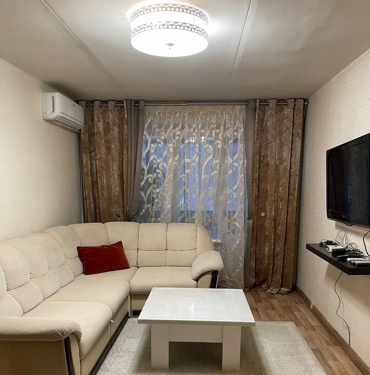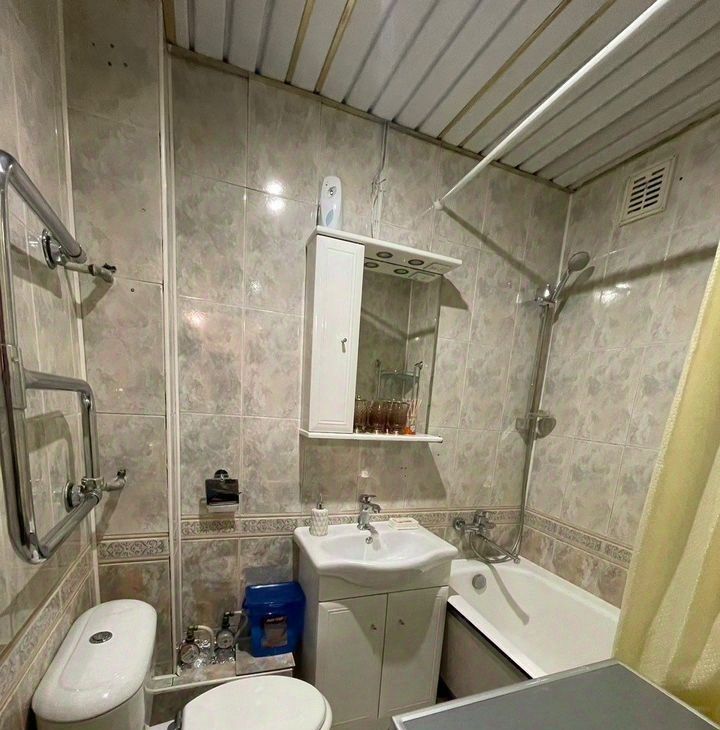Квартира с евроремонтом, что создаёт атмосферу уюта и комфорта. Здесь есть всё необходимое для жизни: кондиционер, холодильник, микроволновая печь, телевизор и стиральная машина. На кухне и в комнатах установлена мебель. Санузел совмещённый, в ванной комнате установлена ванна. Также есть балкон для приятных вечеров на свежем воздухе.