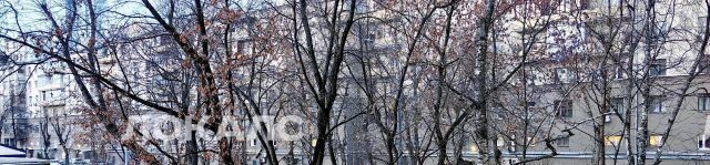 Вид из окон зала, светлой спальной и кухни - во двор, а из спальни с серой кроватью с застекленной лоджией - на ТЦ Европейский.