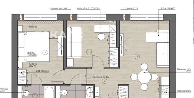 В каждой комнате есть мебель, много мест для хранения, кухня полностью оборудована.