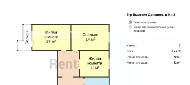 3-к кв. Москва бул. Дмитрия Донского, 9К3 (70.0 м²)