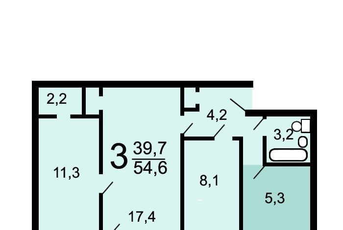 3-к кв. Москва бул. Маршала Рокоссовского, 4 (55.8 м²)