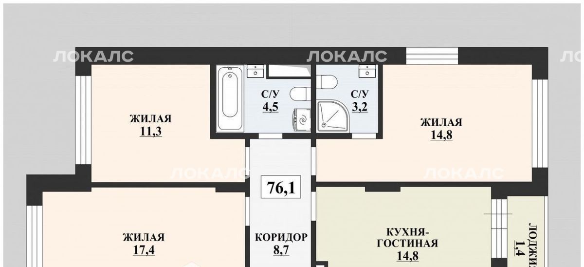 3-к кв. Москва бул. Скандинавский, 14к4 (76.1 м²)
