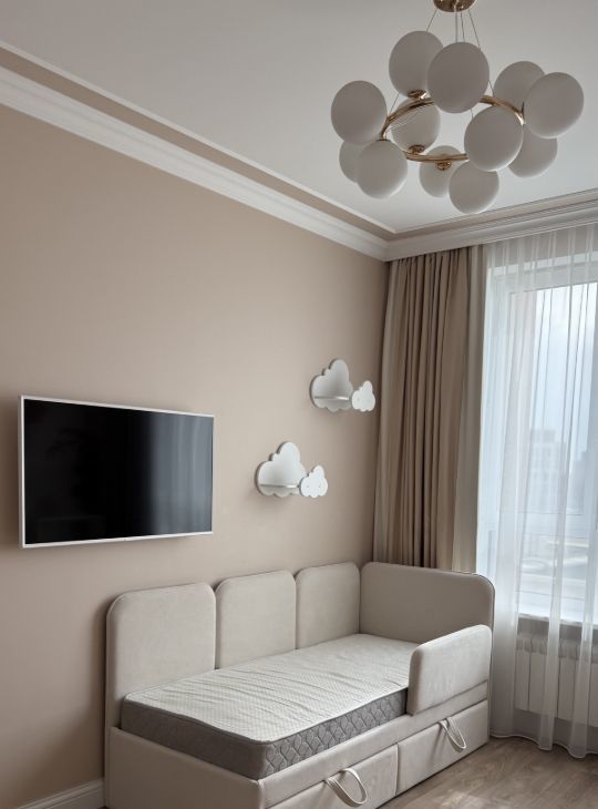 В детской комнате новый шкаф в потолок ,новая кровать с матрасом,вторая кровать-диван в идеальном состоянии,раздвигается !