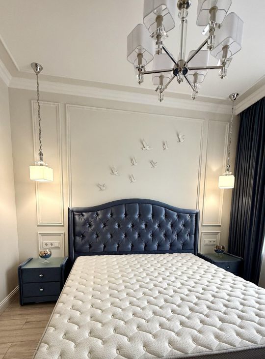 В спальне имеется большая гардеробная со всем наполнением ,кровать ,тумбочки и матрас фирмы Askona!
