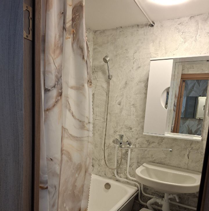 В квартире был сделан ремонт с полной заменой проводки, напольного покрытия (линолеум), сделаны натяжные потолки, новые обои, стоят пластиковые окна (за исключением лоджии). Туалет и ванна отделаны влагостойкой штукатуркой под мрамор. Вся сантехника рабочая.
