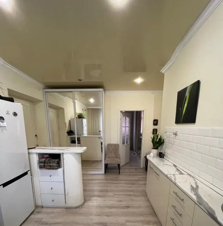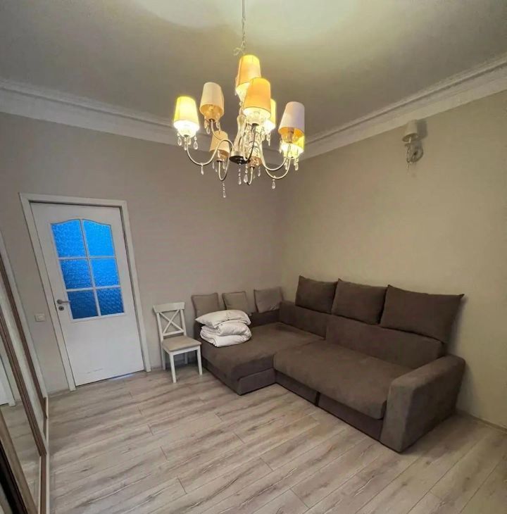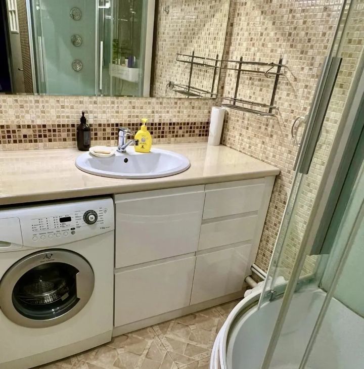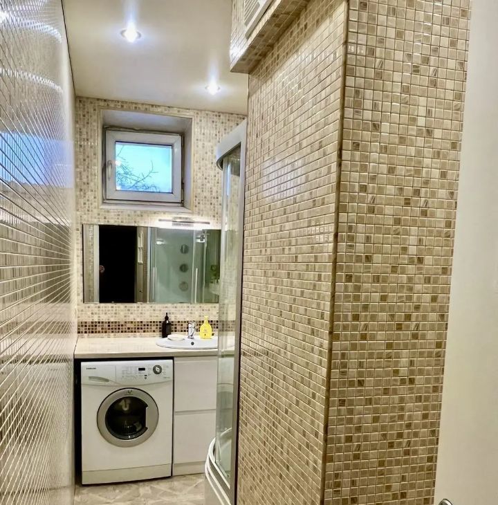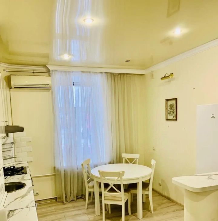 В квартире выполнен евроремонт, поэтому все выглядит современно и ухоженно. Здесь есть вся необходимая мебель на кухне и в комнате, а также полный комплект техники: кондиционер, холодильник, посудомоечная и стиральная машины. Санузел совмещенный, оборудован душевой кабиной. Окна выходят как на улицу, так и во двор, поэтому в квартире всегда светло.
