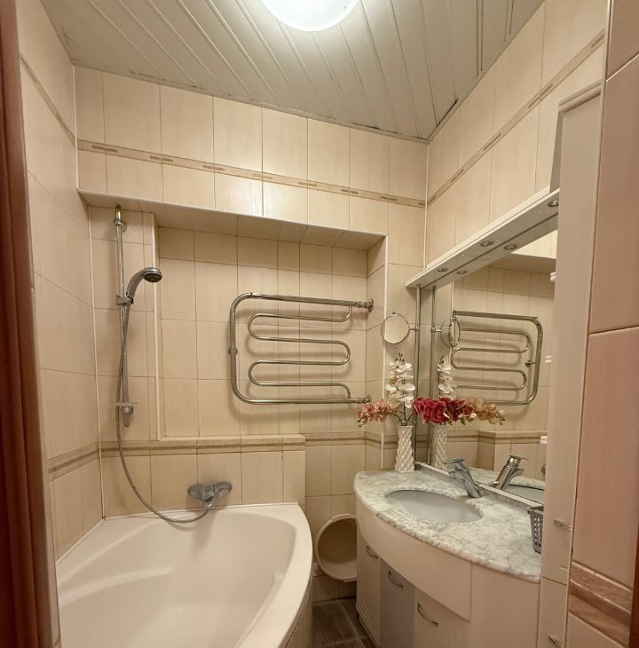 Квартира в хорошем состоянии, очень любима хозяевами. Оборудована всех необходимой техникой - холодильник, стиральная машина, газовая плита со встроенной микроволновкой, посудомоечная машина. С/у раздельный. Комнаты меблированы, изолированные, очень комфортно для тех, кто работает из дома.