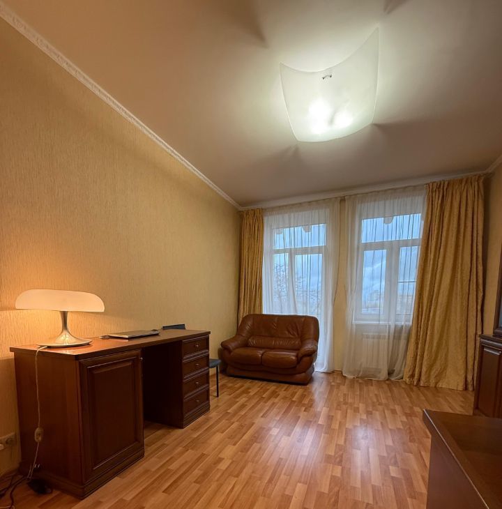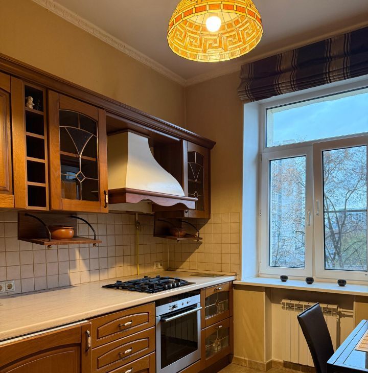 Дом сталинской постройки, атмосферный, в квартире высокие потолки, много света и пространства.