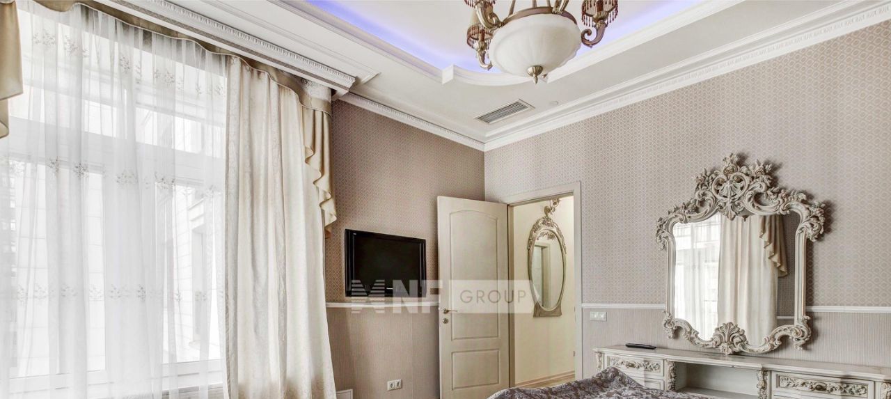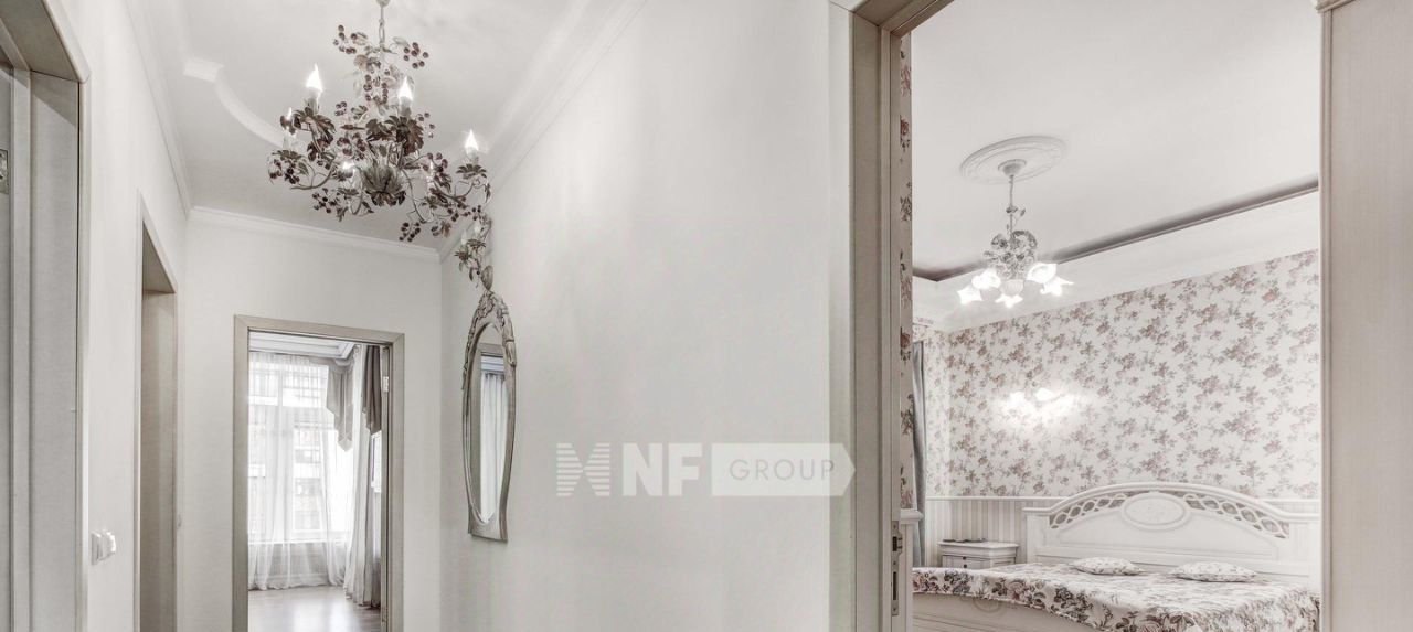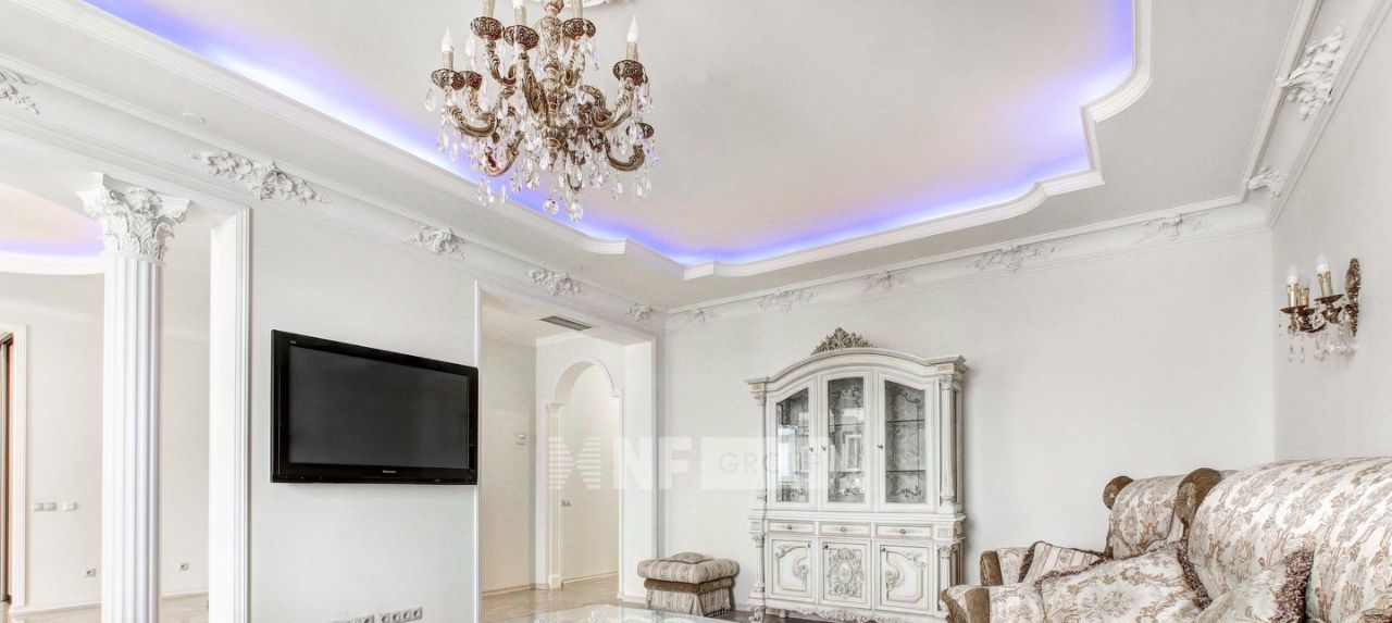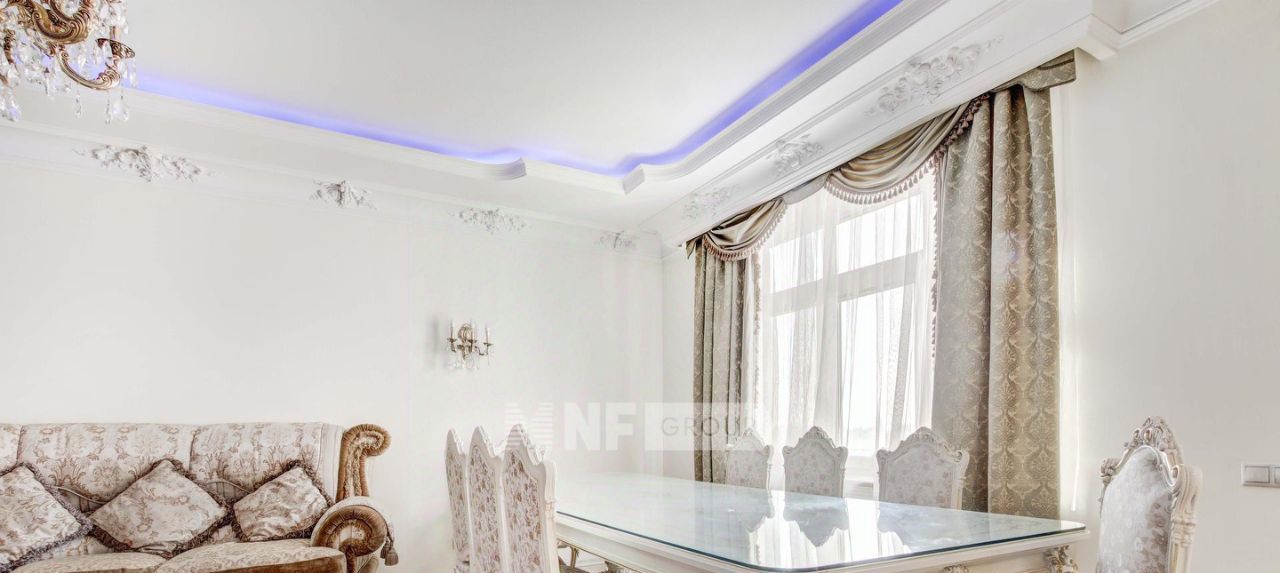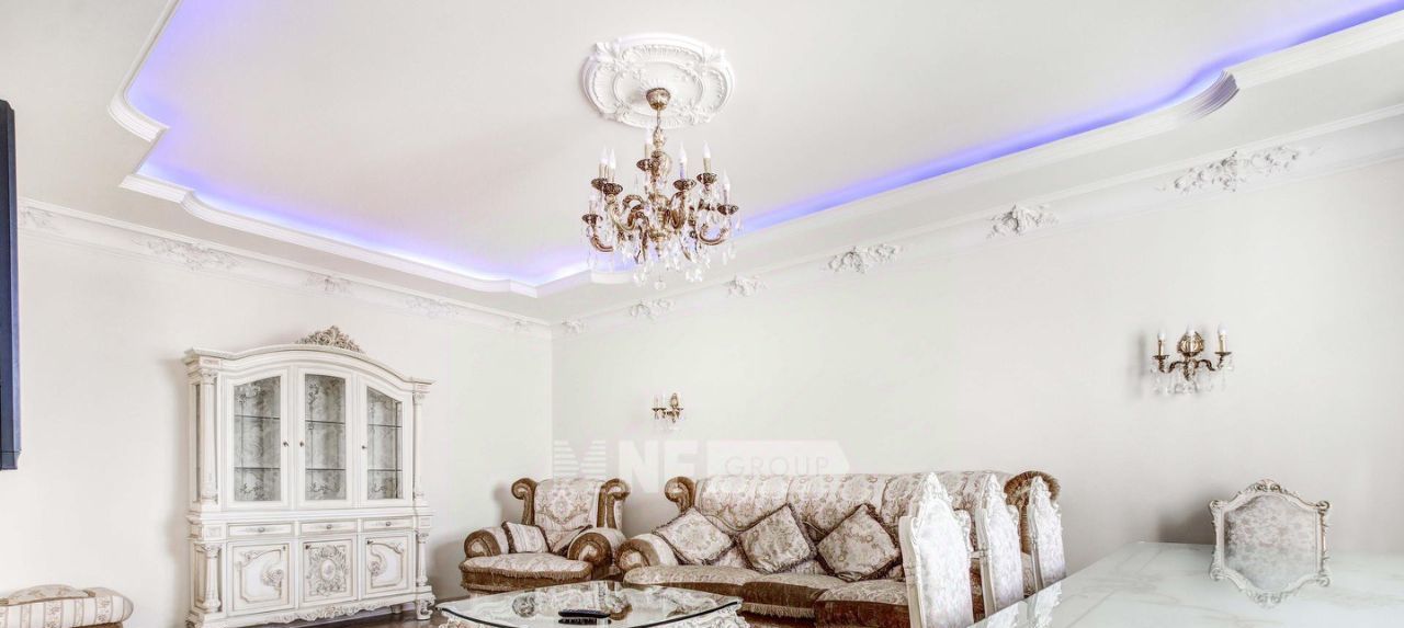 Выполнена отделка в классическом стиле с элементами барокко, установлена мебель, выполненная на заказ, функциональная бытовая техника и современные инженерные системы.