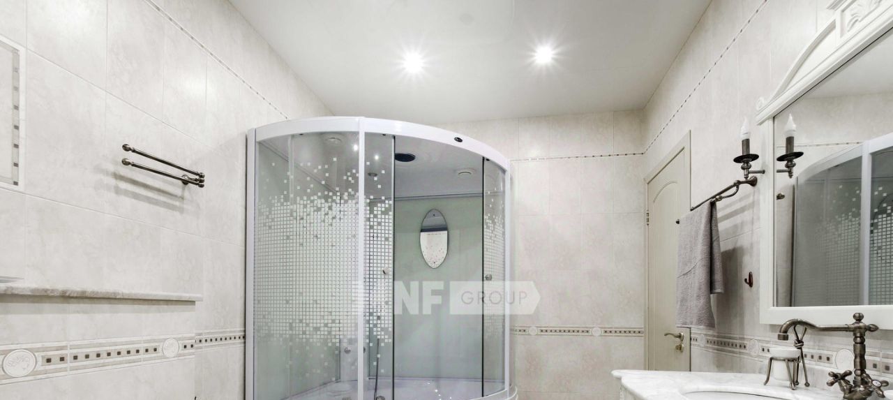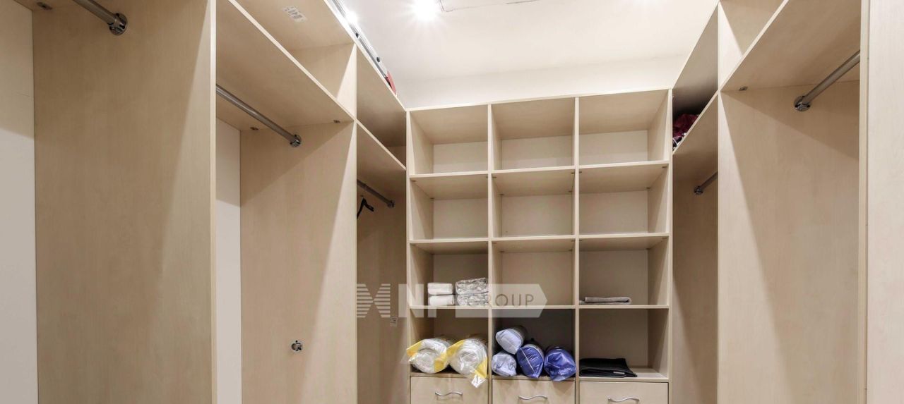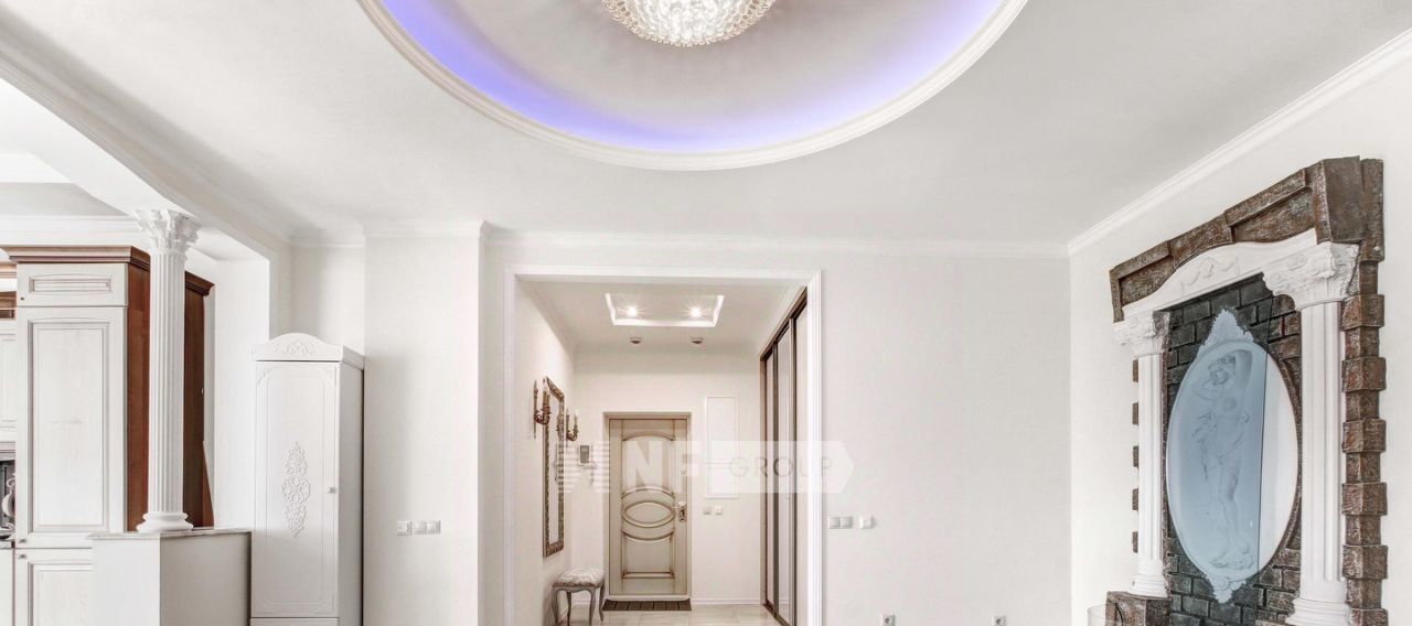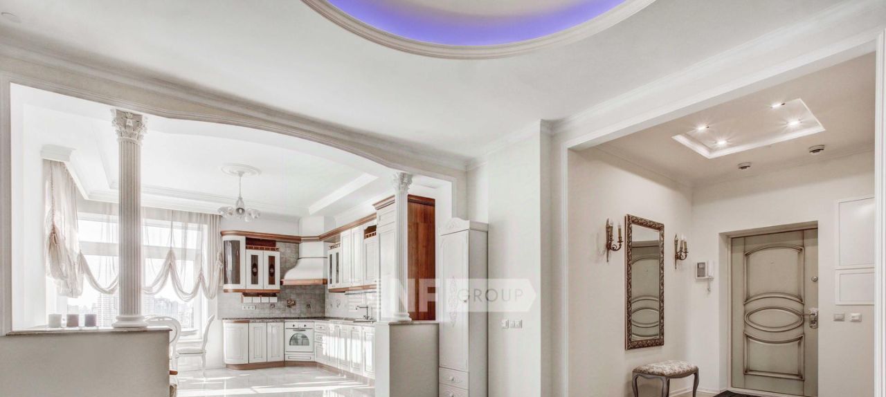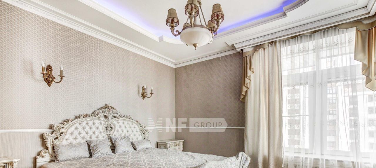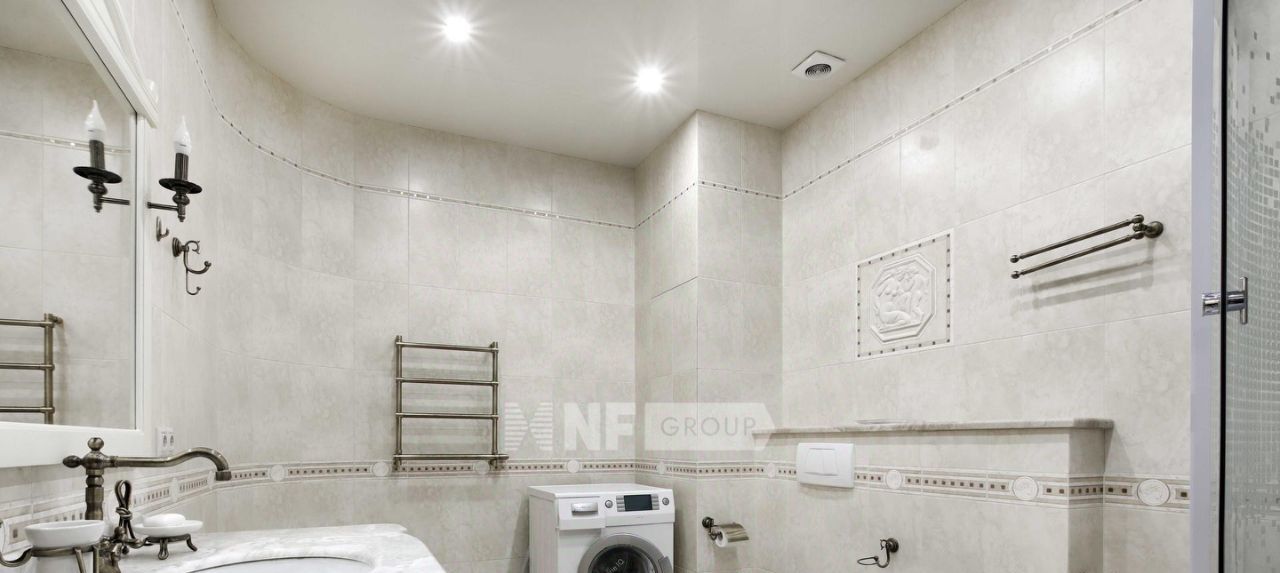 Выполнена отделка в классическом стиле с элементами барокко, установлена мебель, выполненная на заказ, функциональная бытовая техника и современные инженерные системы.