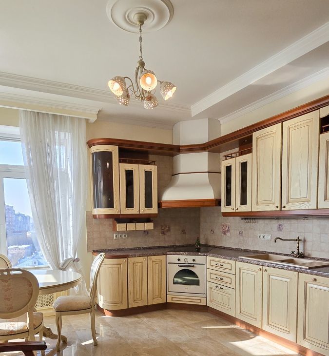 Просторная кухня, частично объединённая с гостиной
