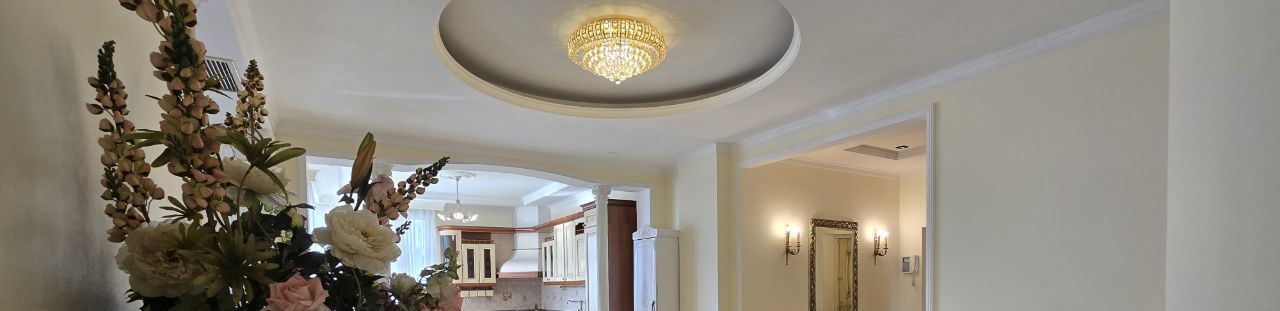 Просторная видовая 3-х комнатная квартира в аренду от СОБСТВЕННИКА!!! Квартира с дизайнерским ремонтом. Полностью укомплектована мебелью в кухне и во всех комнатах. Стиль ампир. Имеется вся необходимая техника: стиральная машина, холодильник, плита, вытяжка; телевизоры в каждой комнате. Полностью готова к въезду. Будет комфортна для семьи. Просторная кухня частично объединена с гостинной. В гостинной большой телевизор и уютный диван с журнальным столиком. Обеденная хона для большой компании в зоне гостиной. Две изолированные спальни. Санузел с душевой кабиной и ванной. Просторный коридор. Гардеробная. Система хранения. Вид из спален в тихий двор. Вид из кухни на город - закатная сторона.