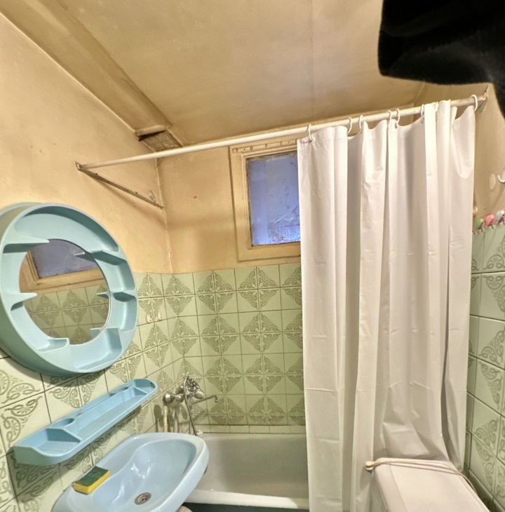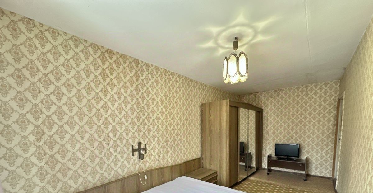 Имеется вся необходимая мебель (двуспальная кровать, кровать одноместная, шкафы, стенка, комод, стол письменный складной) и бытовая техника (стиральная машина, холодильник , телевизор) Кухонная наборная мебель, обеденный стол со стульями. Сан. узел. совмщенный