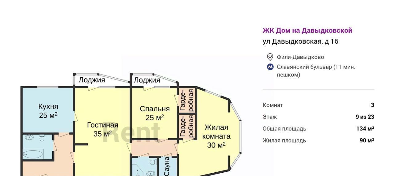 БЕЗ КОМИССИИ ДЛЯ АРЕНДАТОРА. Неподалеку от метро "Славянский бульвар" предлагается комфортабельная квартира с видом на лес. Качественный ремонт, комнаты располагают мебелью. Просторная кухня оснащена комплектом бытовой техники, в том числе посудомоечной машиной. Для поддержания порядка оборудованы две гардеробных. Есть две лоджии. Две полноценных ванных комнаты и сауна.