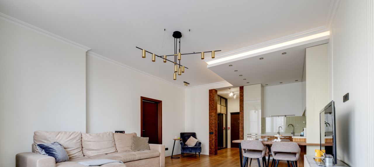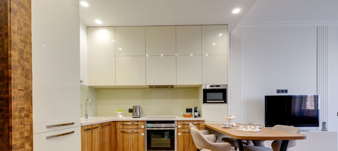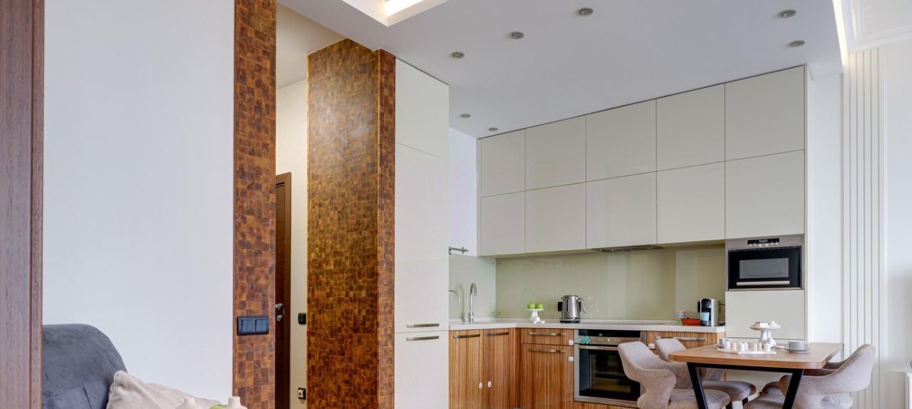 Кухня-гостиная — настоящее сердце квартиры, идеальное для приёмов и семейных ужинов.