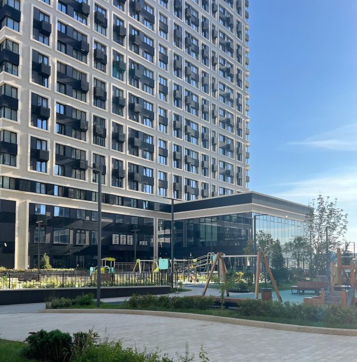Современный жилой комплекс с закрытой охраняемой территорией: двор без машин, подземный паркинг, лифты OTIS, коворкинг для жильцов, оборудованная детская площадка внутри закрытого двора.