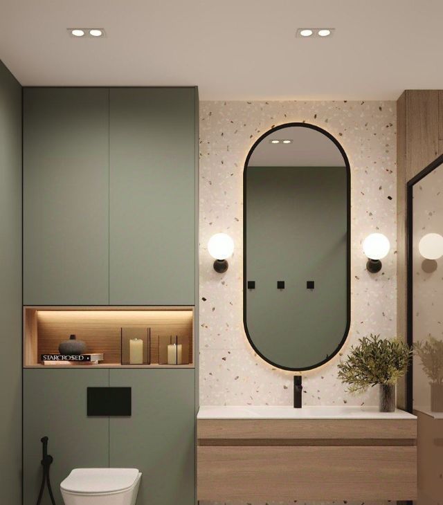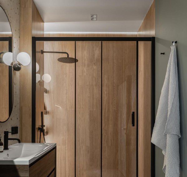 • Душевая кабина с тропическим душем, тёплая стена в ванной комнате, проточный водонагреватель.