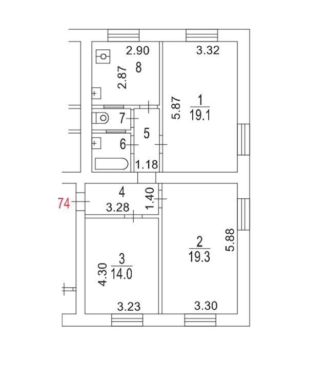 3-к кв. Москва Дербеневская ул., 18к1 (74.0 м²)