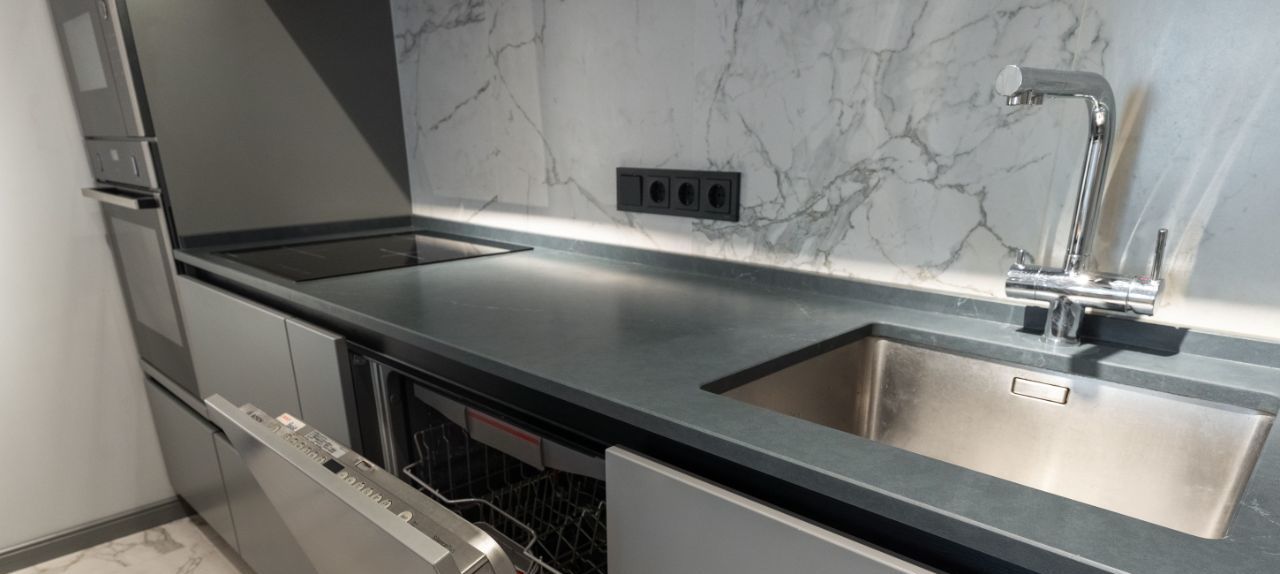 С использованием очень качественных отделочных материалов. Интерьер выдержан в спокойной цветовой гамме, что создает атмосферу уюта. Жилье полностью укомплектовано необходимой мебелью и бытовой техникой для комфортного проживания: установлены холодильник, варочная панель, духовой шкаф, стиральная машина и кондиционер.