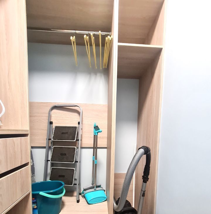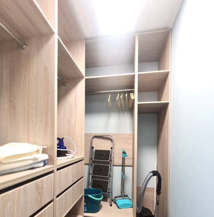 Планировка: кухня-гостиная 28 кв.м и две изолированные комнаты 16 кв.м и 15 кв.м. Два санузла, один из них с полноценной ванной. Есть вместительная темная комната с полками для хранения. Квартира, очень светлая, аккуратная. Окна на две стороны света (распашонка).