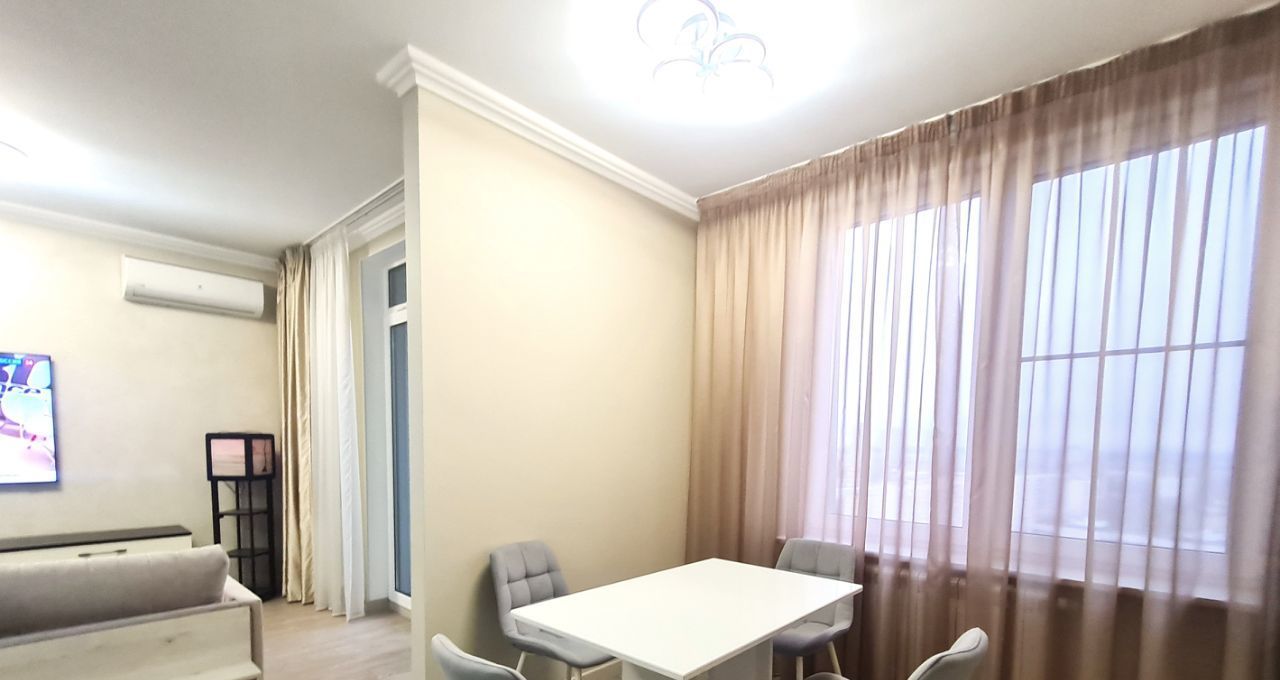 В квартире выполнен ремонт с нуля с применением качественных материалов. Грамотное разведение сантехники, электрики. Достаточное количество розеток и интернет-портов. В каждой комнате сплит-система на охлаждение и обогрев. Квартира полностью укомплектована мебелью и техникой. Есть все необходимое для комфортного проживания.