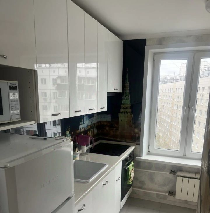Квартира расположена на 8 этаже панельного дома 1974 года постройки. В доме есть мусоропровод и два пассажирских лифта, а также грузовой лифт. Из окон открывается вид на зелёный двор, где находится спортивная площадка.